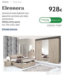 Vendo camera letto completa Eleonora (armadio 6 ante con specchio, cassettiera, specchio, 2 comodini e letto CONTENITORE) mondo convenienza. Foto reali solo in privato Ritiro a carico dell acquirente
