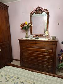 vendo camera letto in legno massello color noce composta da testiera piu rete....2 comodini misure 60x65x40 como con specchiera misure 235x120x55 armadio 4 ante misure 275x255x60 ottimo stato ...smontaggio e trasporto carico acquirente...