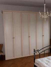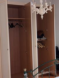 Bella e robusta camera da letto in legno laccato composta da letto in ferro battuto comodini como’ specchiera e armadio in perfetto stato di conservazione. Smontaggio e trasporto a carico del compratore