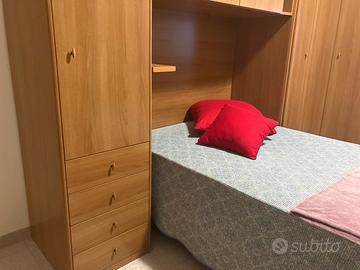 Camera letto Composta da armadio,libreria,scrivania,letto 3/4 con materasso nuovo mai usato Adatta per ragazzi/e Da ritirare in loco a cura acquirente