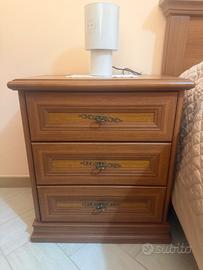 Camera da letto matrimoniale tipo classico in legno massello Comprende : Frame lettto Rete e materasso Due comodini Una cassettiera con specchio Un armadio grande