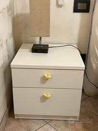 armadio a tre ante L135XP58XH215, cassettone a 4 cassetti L90XP45XH79, 2 comodini L45XP45XH44, rete matrimoniale a doghe, testiera imbottita da rivestire completa di fodera a 300 € totali. Pezzi vendibili anche separati.