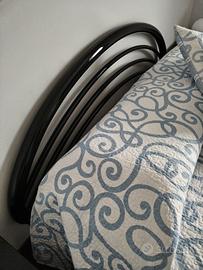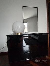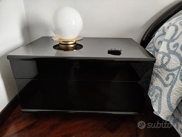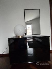 Camera letto nero laccato: letto matrimoniale, comodini doppio cassetto, madia a quattro cassettoni, specchio. Disponibilità immediata