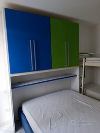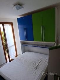 camera da letto matrimoniale con armadio a ponte e letto matrimoniale con contenitore doghe in legno e materasso