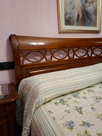 vendo camera letto in legno massello elegante con naturali venature del legno ...particolare la testiera del letto così come il disegno che si ripete su ogni singolo componente...composta da 2 comodini molto capienti....un bellissimo como e un armadio 4 sportelli con relativa cassettiera.in ottimo stato ...Trattabile € 3900...Trasporto e smontaggio a carico acquirente