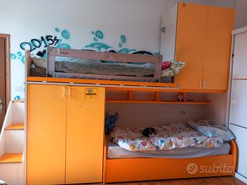 Composizione Moretti compact robusta con 2 letti 2 armadi medi e scaletta con cassetti Sponda Foppapedretti. No materassii. Lunghezza 3.5 mt. Solo ritiro di persona con pagamento in contanti alla consegna