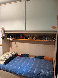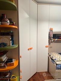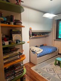 Vendesi camera cameretta per ragazzo o ragazza o bimbo bimba con cabina armadio angolare , letto con armadiatura a ponte più secondoletto a scomparsa (inclusi due materassi pari a nuovo ) più altra parete di armadiatura