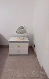Camera da letto bianca con finiture grigio; misure le seguenti: armadio 250 x 60 h 228 Comodino 49 x 42 h 40 Letto singolo no materasso 200 Smontaggio e consegna a carico cliente