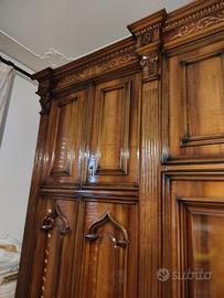 Camera letto matrimoniale con grande armadio h.270 cm. Il legno palissandro. In stile barocco. Possibile smontaggio, consegna e rimontaggio (da concordare a parte)