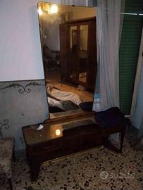 camera letto completa composta da armadio 4 ante con 2 ante centrali a specchio, cassettiera 6 cassettoni con specchiera, petineuse con grande specchiera in radica di noce stile anni 60 in ottime condizioni per sgombero contatto via mail per info