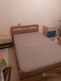 camera composta da giroletto rete e materasso una piazza e mezzo, un comodino e una cassettiera in tinta,per cui si può abbinare a qualunque armadio, io l ho abbinato ad un armadio chiaro ma può essere anche blu o celeste.