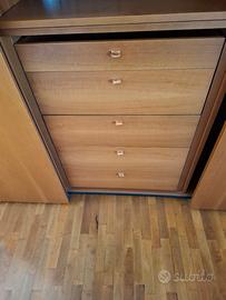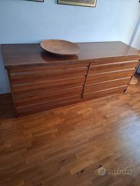 Cassettone doppio, in legno 8 cassetti, letto matrimoniale sommier con materasso permaflex nuovo!Testiera con cassettiere laterali integrate tutto legno