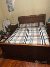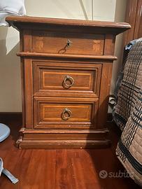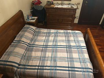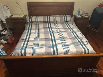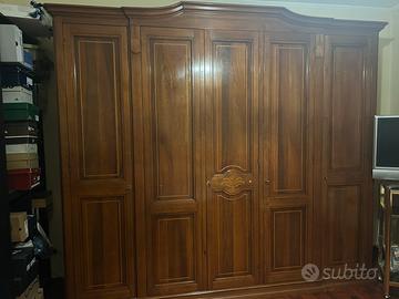 Vendesi splendida camera da letto matrimoniale completa, realizzata interamente in Vero Legno Massello di Noce Nazionale. I mobili presentano eleganti rifiniture classiche e raffinati fregi intarsiati a mano, perfetti per chi cerca la qualità e il calore del legno vero, superiore ai comuni mobili moderni. La camera comprende 6 pezzi coordinati: Armadio a 6 ante battenti: Molto capiente, con cornice superiore lavorata e dettagli intarsiati sulle ante centrali. Letto Matrimoniale: Struttura robusta con testata e pediera coordinate in massello. Comò (Cassettone): Capiente, con 3 cassetti grandi e cassettini superiori, impreziosito da decoro centrale. Specchiera: Cornice in massello coordinata con fregio superiore. 2 Comodini: A tre cassetti, ideali per completare il set ai lati del letto. Condizioni: I mobili sono stati tenuti con estrema cura, non presentano difetti strutturali e il legno è lucido e ben conservato. Informazioni Logistiche: Ritiro: A carico dell'acquirente (smontaggio e trasporto). Prezzo: € 2200 trattabili. Nota: Disponibile per visione su appuntamento
