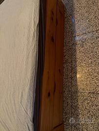 Struttura da letto piazza e mezzo, in legno con piccolo cassetto contenitore (materasso in omaggio in ottime condizioni) Cassettiera in solito legno della struttura da letto In otttime condizioni Trasporto e smontaggio a carico dell’acquirente