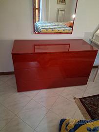 camera matrimoniale con letto incassonato,como' armadio ,e comodini colore rosso € 450.