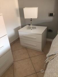 Camera matrimoniale completa letto contenitore , 2 comodini armadio a 3 scomparti con ante scorrevoli e fornito di cassetti piu como porta TV con specchio materasso incluso come nuovo