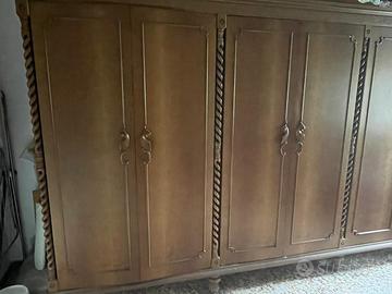 Vendo camera con lavorazioni tornite a mano completa di armadio 6 ante, comò con specchio, baule, due comodini, due poltrone. Smontaggio e ritiro a cura dell’acquirente