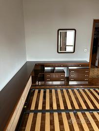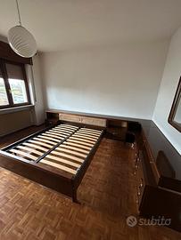 Vendo camera matrimoniale composta da comodini e comò cassettiera + struttura letto matrimoniale + armadio grande + specchio Misura camera: Lato lungo 359 cm Lato specchio 217 cm Armadio: Larghezza 282 cm Altezza 265 cm Profondità 60 cm Struttura del letto da rinforzare con viti