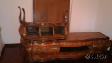 Vendo camera matrimoniale inizi anni 40. Pezzi unici artigianali in stile barocco (costruita da un'artigiano veneziano). Noce e radica con stucchi in foglia oro. Da restaurare e fare trattamento antitarlo in anossia. Completa di letto, comodini, armadio tre ante, specchiera, comò con specchio, sgabello e due poltroncine. Prezzo poco trattabile. Scrivere solo se realmente interessati. Al momento è completamente smontata. Trasporto a carico dell'acquirente.