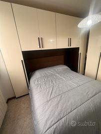 Vendo camera matrimoniale con armadio a ponte a sei ante e testata in semipelle marrone scuote SENZA MATERASSO