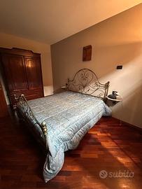 Camera matrimoniale completa senza materasso in legno antico (primi 900) e letto in ferro battutto.
