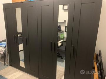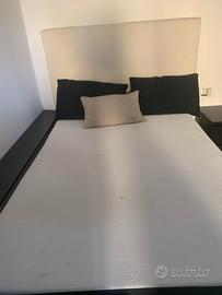 Camera matrimoniale composta da due armadi neri Ikea abbianati al conodino e alla scrivania completata dalla comida poltrona bianca che si sposa perfettamente con lo stile del letto made in italy rivestito da tessuto in cotone pretatatto completamente sfoderabile, dotato di materasso nuovo in memory. Solo interessati prezzo non trattabile.