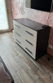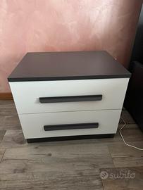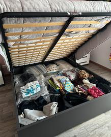 Vendo camera matrimoniale completa composta da: - Letto contenitore standard. (Materasso escluso) - 2 comodini 50 x 50 - 1 comò 140x100 - 1 armadio 3 ante scorrevoli grigio cemento 275x60 Colori: Antracite,Bianco, grigio cemento. Il prezzo comprende tutto l’arredo ESCLUSO il materasso.
