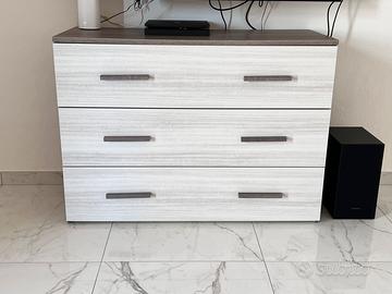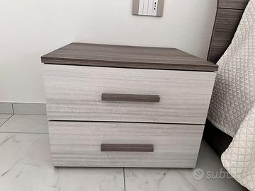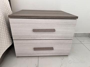 Un comodino (quello di destra nella foto) presenta un piccolo difetto in un angolo del cassetto.