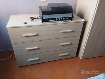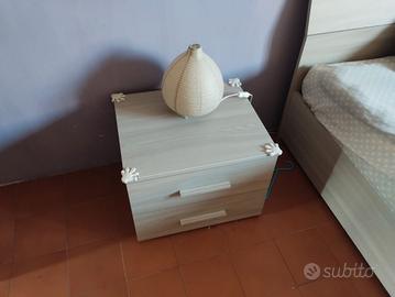 vendo camera completa con letto contenitore, come da foto, composta da: letto, armadio 6 ante, cassettiera, 2 comodini e specchio non presente in foto. Se interessati vendo abat-jour e lampadario abbinati. Camera praticamente nuova.