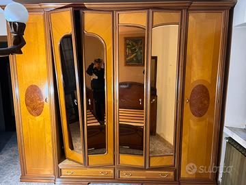 Vendo camera completa di struttura del letto (senza rete) + due comodini + cassettiera con specchio + armadio a 6 ante (in perfette condizioni, manca una cerniera per quello che l’anta si stacca).