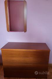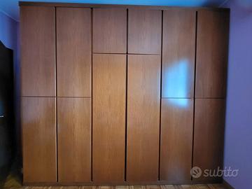 Vendo camera matrimoniale completa in colore noce chiaro e in ottimo stato. E’ composta da: * N. 1 Letto matrimoniale 204x170x70h cm * N. 1 Rete indipendente con doghe in legno di faggio 196x164x35h cm * N. 2 Comodini con due cassetti 65x45x41h cm * N. 1 Comò con 4 cassetti 100x45x72h cm * N. 1 Specchiera 72x50 cm * N. 1 Ampio armadio a 6 ante 300x61x264h cm Il primo vano a sinistra dell’armadio è diviso in due parti uguali di altezza 122 cm da un ripiano intermedio: la parte superiore ha un’asta appendiabiti mentre la parte inferiore ha due ripiani e una cassettiera a 3 cassetti. Il vano centrale dell’armadio è diviso in due parti: la parte superiore di altezza di 59 cm ha un ripiano mentre la parte inferiore di altezza 185 cm ha un’asta appendiabiti, un ripiano e una cassettiera a 3 cassetti. Sul lato interno dell’anta di destra del vano centrale c’è uno specchio che misura 180x36 cm. L’ultimo vano a destra dell’armadio è diviso in due parti uguali di altezza 122 cm da un ripiano intermedio: sia la parte superiore che quella inferiore hanno un’asta appendiabiti. Disponibile a valutare anche una vendita solo parziale dell'armadio o del letto con comodini, comò e specchiera. Tempi e modalità di smontaggio e consegna da concordare. Trasporto a cura dell’acquirente.