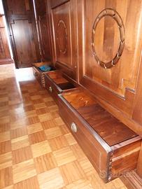 camera matrimoniale in legno massiccio composta da letto, comodini,cassettiera con specchio e armadio tenuta bene con qualche piccolo graffio dovuto al trasloco