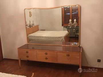 Camera matrimoniale completa, in legno laccato lucido, con finiture di pregio e in ottime condizioni. La camera è composta da: Letto Matrimoniale con 2 materassi interi. Due comodini a 2 cassetti. Armadio di 310 cm. a 5 ante con 3 specchi e 5 cassetti interni. Comò lungo 190 cm a 6 cassetti con una grande specchiera (175x120 cm) completa di applique a gocce abbinate al lampadario. Grande lampadario a gocce.