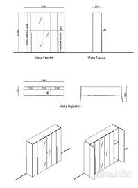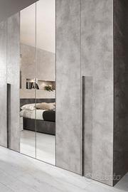 Camera 6 Ante Battenti Con Specchio Centrale L.240 P.52 H.236 Con Letto Contenitore Colore Ossido Bronx / Cemento Bronx Camera seminuova, mondoconvenienza con materasso incluso