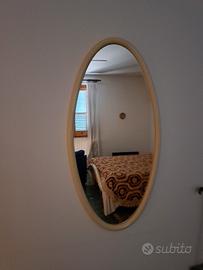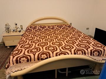 camera matrimoniale con armadio a sei ante con cassettiera centrale due comodini e un cassettone con specchio, colore avorio chiusure ante da rivedere complessivamente in buono stato.