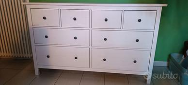 Camera matrimoniale Bianca composta da Struttura letto Brimnes 160 x 200 con 4 cassetti capienti, doghe in legno e materasso rigido a molle. Cassettiera Hemnes con 8 cassetti. 2 Guardaroba Platsa 80 x 180 cm (da poter mettere ad angolo e già predisposti per mettere eventuale tendina). Vendo a metà prezzo
