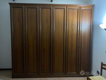 Camera composta da: letto matrimoniale con rete, armadio 6 ante, 2 comodini con abat jour, cassettiera con specchio. Tutto in ottime condizioni.