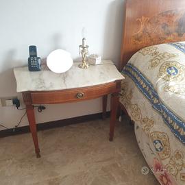 Fine anni 50. Armadio con due specchi e parte centrale con cassettiera interna, letto matrimoniale (no reti e materassi), comò ampio con ripiano in marmo di Carrara, uguale sui due comodini.