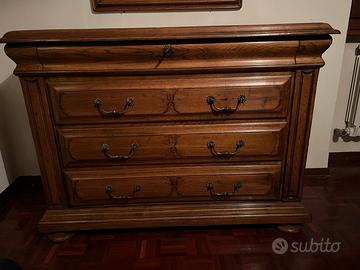 Camera matrimoniale in legno con due comodini, letto matrimoniale, armadio lunghezza 3 metri e como’ con cassetti e specchio, il tutto in ottime condizioni, se vende tutto a 1000€.
