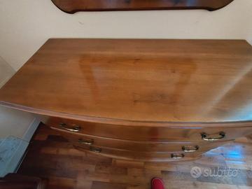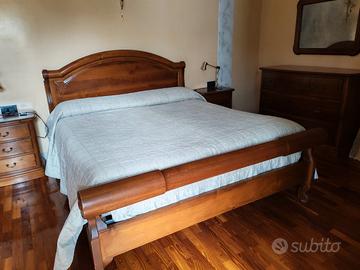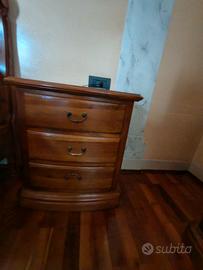 camera in legno massello prodotta da artigiani veneti con n. 2 comodini, 1 comò a 3 cassettoni lunghezza mt 1,20, 1 specchio, 1 letto 172 x 210, 1 armadio sagomato lunghezza mt 2,95 H mt 2,45 al centro e 2,25 ai lati tutto in legno, escluso reti e materassi