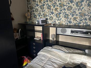 Splendido affare: vendo per trasferimento camera matrimoniale in legno palissandro blu tenuta con cura maniacale. Armadio 4 stagioni h 2.60 lunghezza.3.04, comò larghezza 90 cm. letto matrimoniale con incorporate testiera porta cuscini e comodini. Dotata di radio stereo FM. In regalo materasso ortopedico.