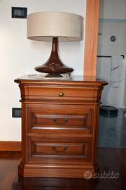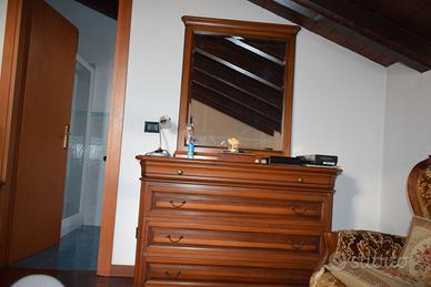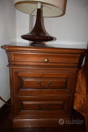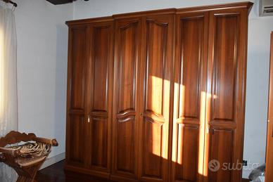 Camera matrimoniale composta da : letto 2 piazze, armadio grande, 2 comodini ,un comò con specchio , 2 sedie in stile, una poltrona in stile, completo di abasciur. Vendo solo in blocco.