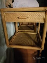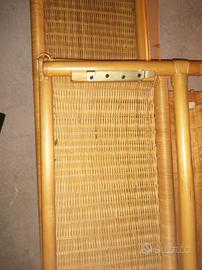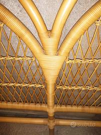 Camera matrimoniale in rattam e vimini composta da letto matrimoniale piiù armadio a 4 ante di un piano alto 160cm e lungo 190cm più 2 comodini e lampadario.