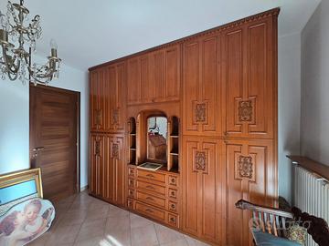 Camera matrimoniale anni '70 in legno massiccio, completa di armadio 9 ante+scrigno misure cm L310xP60xH270, comò/scrittoio cm L103xP50xH112, N. 2 comodini cm L62xP33xH58, testiera letto matrimoniale cm L173xP5xH120 Smontaggio e trasporto in loco a carico dell'acquirente
