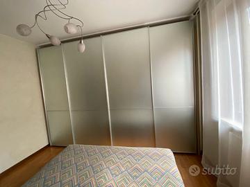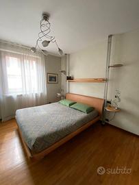 Vendo elegante camera matrimoniale completa causa trasloco, perfetta per chi cerca uno spazio moderno, funzionale e già pronto da vivere. - Letto matrimoniale in legno con testiera integrata e design pulito - Coppia di comodini con lampade di design - Ampio armadio scorrevole con ante in vetro satinato, capiente e silenzioso - Sistema di mensole e pali metallici a tutta altezza Da smontare e ritirare in loco, prezzo trattabile