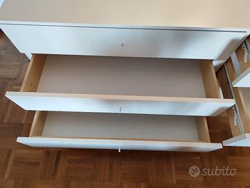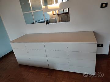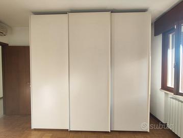 Camera da letto matrimoniale completa moderna, compresa di materasso ( no giroletto) , due comodini e cassettiere. Tutto come in foto. misure materasso matrimoniale 200 cm x 175 cm circa misure cassettiere lunghezza 192 cm x altezza 66 cm x profondità 61 cm. misure armadio con 3 ante scorrevoli 262 altezza x 60 profondità x 270 lunghezza. In buono stato generale, disponibile da subito. Prezzo poco trattabile. smontaggio e ritiro a carico di acquirente
