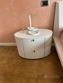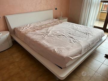Letto bianco legno con doghe, due comodini con cassetti, un comò con cassetti e un armafio von due ante scorrevoli