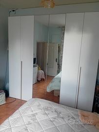 Camera matrimoniale moderna composta da letto matrimoniale con contenitore, armadio 3 ante, como con specchiera e comodini