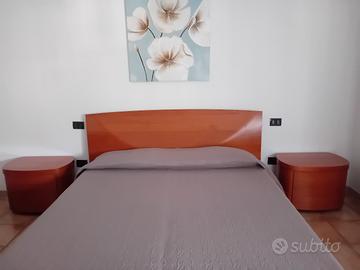 Camera matrimoniale in legno composta da como,specchio,comodini,giroletto e rete con doghe in legno. Smontaggio e trasporto a carico dell'acquirente. Pagamento prima dello smontaggio.