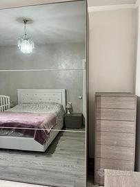 Vendo camera Giessegi composta da 2 comodini 53L x P43 X 40H, como 120L x 52P x 77H, settimino 130h x 53L x 43p ed armadio con 2 ante scorrevoli con specchio fumé 245h x 280L x 68P.